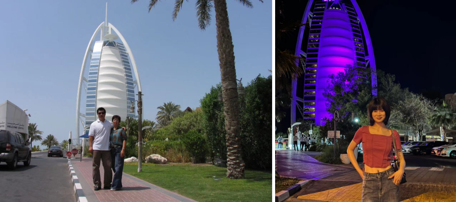 "In 2004, my grandmother and father traveled to Dubai for the first time and had their photo taken in front of the Dubai Marina Hotel, where they lived for eight years. This family experience is etched in my memory. Later, I joined MTSCO and chose to develop my career in the Middle East market, partly due to my familiarity and affection for Dubai. On this business trip, I traveled to Dubai and took a similar photo in the same place. 20 years on, the backdrop and the facilities have changed drastically, making me feel that destiny is amazing."
